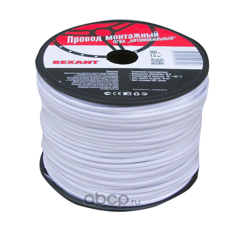 Провод ПГВА автомобильный монтажный 1х1.50 мм², белый, бухта 100 м