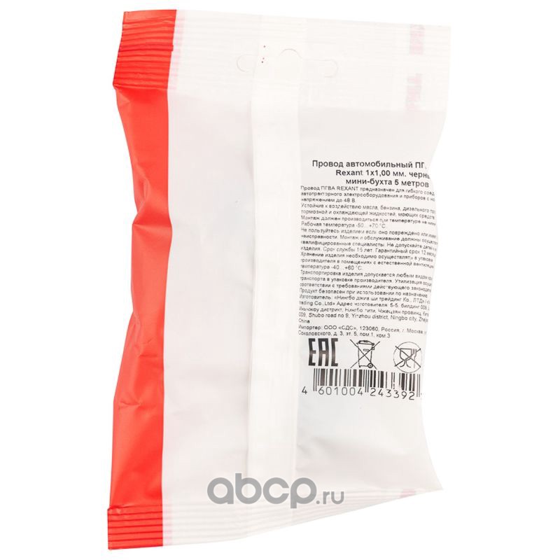 |  | REXANT | 01652625 | Провод автомобильный ПГВА/ПВАМ REXANT 1х1,00 мм черный, мини-бухта 5 метров |  |