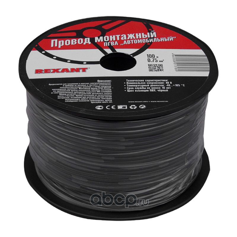 |  | REXANT | 016516 | Провод ПГВА автомобильный монтажный 1х0.50 мм², черный, бухта 100 м |  |