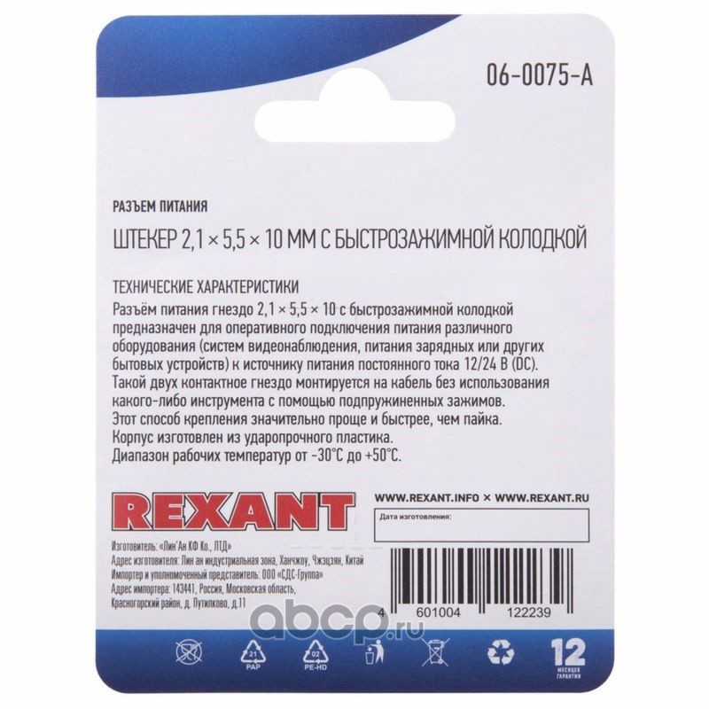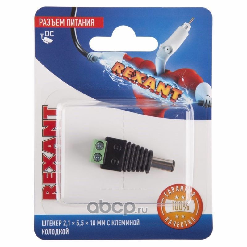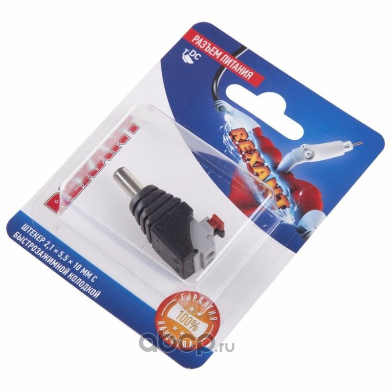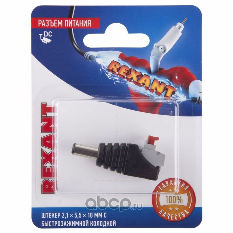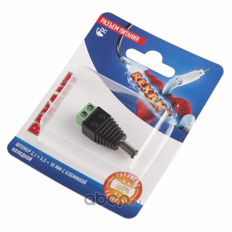 Разъем питание на кабель, штекер 2,1х5,5x10мм. с быстрозажимной колодкой, (1шт.) REXANT