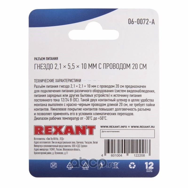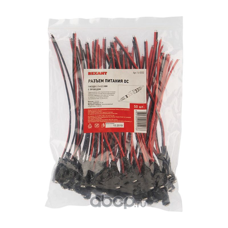 Разъем питания гнездо 2.5х5.5 мм с проводом 20 см REXANT
