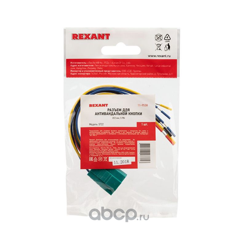 Разъем для антивандальной кнопки Ø22 мм 5pin REXANT