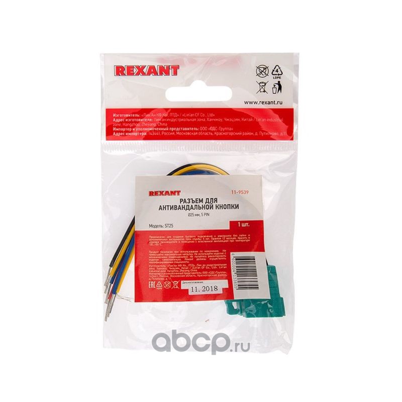 Разъем для антивандальной кнопки Ø25 мм 5pin REXANT