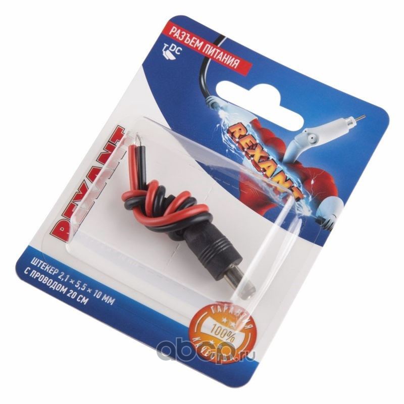 Разъем питания штекер 2,5х5,5х10 мм с проводом и манжетой 1 м REXANT