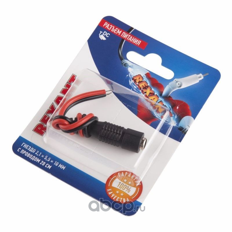 Разъем питание на кабель, гнездо 2,1х5,5x10мм. с проводом 20 см., (1шт.) REXANT