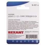 Разъем питание на кабель, штекер 2,1х5,5x10мм. с проводом 20 см., (1шт.) REXANT