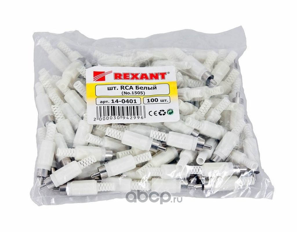 | REXANT | 140401 | Разъем штекер RCA белый пайка REXANT | ||