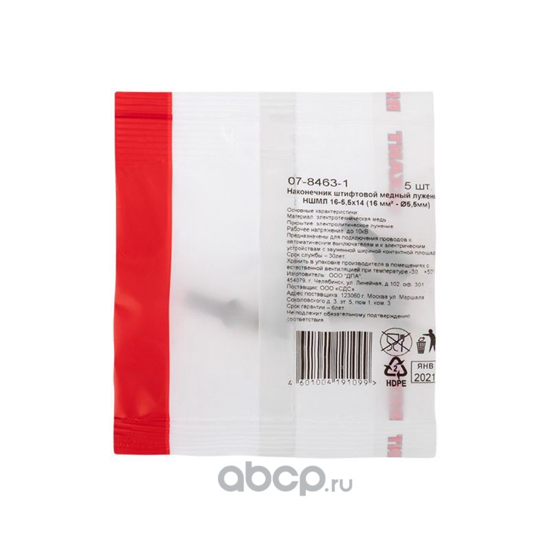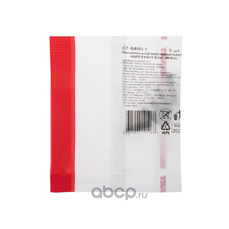 Наконечник штифтовой медный луженый НШМЛ 6-5,5х12 (6 мм² - Ø5,5мм) (в упак.5 шт.) REXANT