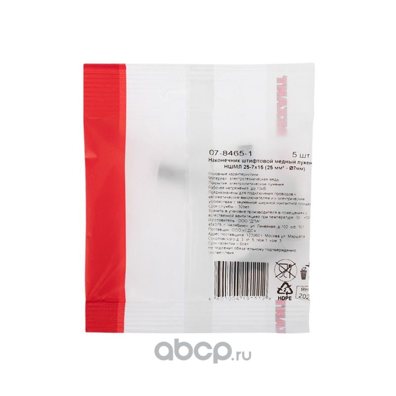 Наконечник штифтовой медный луженый НШМЛ 25-7х15 (25 мм² - Ø7мм) (в упак. 5 шт.) REXANT