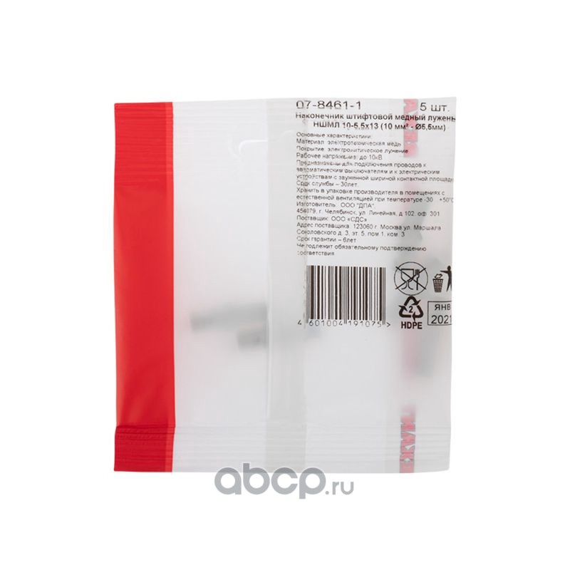 Наконечник штифтовой медный луженый НШМЛ 10-5,5х13 (10 мм² - Ø5,5мм) (в упак. 5 шт.) REXANT