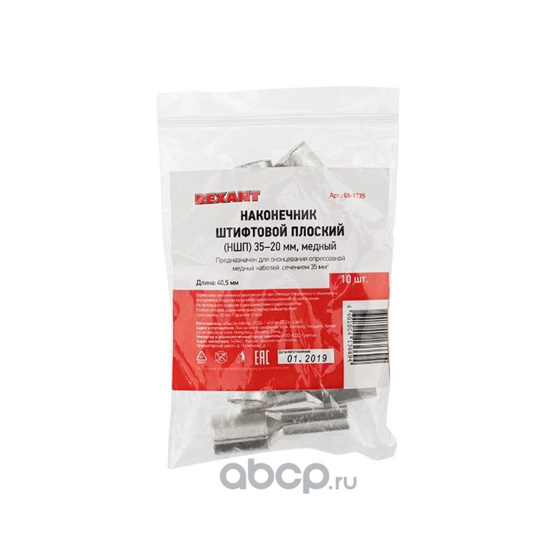 Наконечник штифтовой плоский кабельный (НШП) 35–20 REXANT