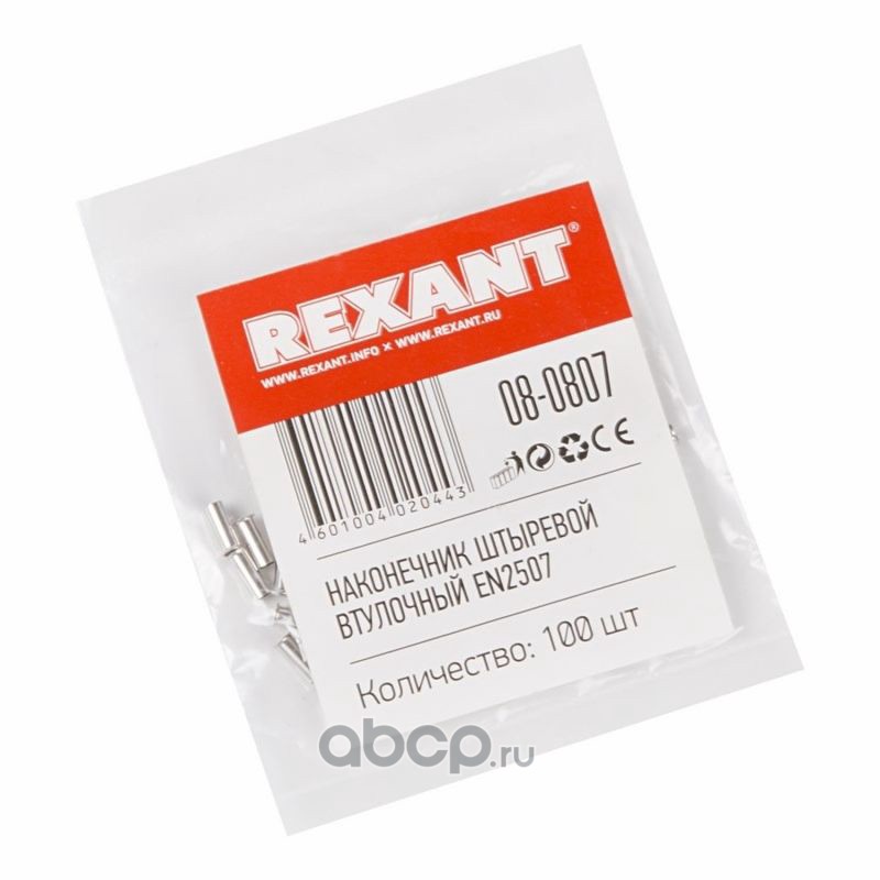 Наконечник штыревой втулочный L-6 мм 0.75 мм² (НШВ 0.75-6/НГ 0.75-6) REXANT