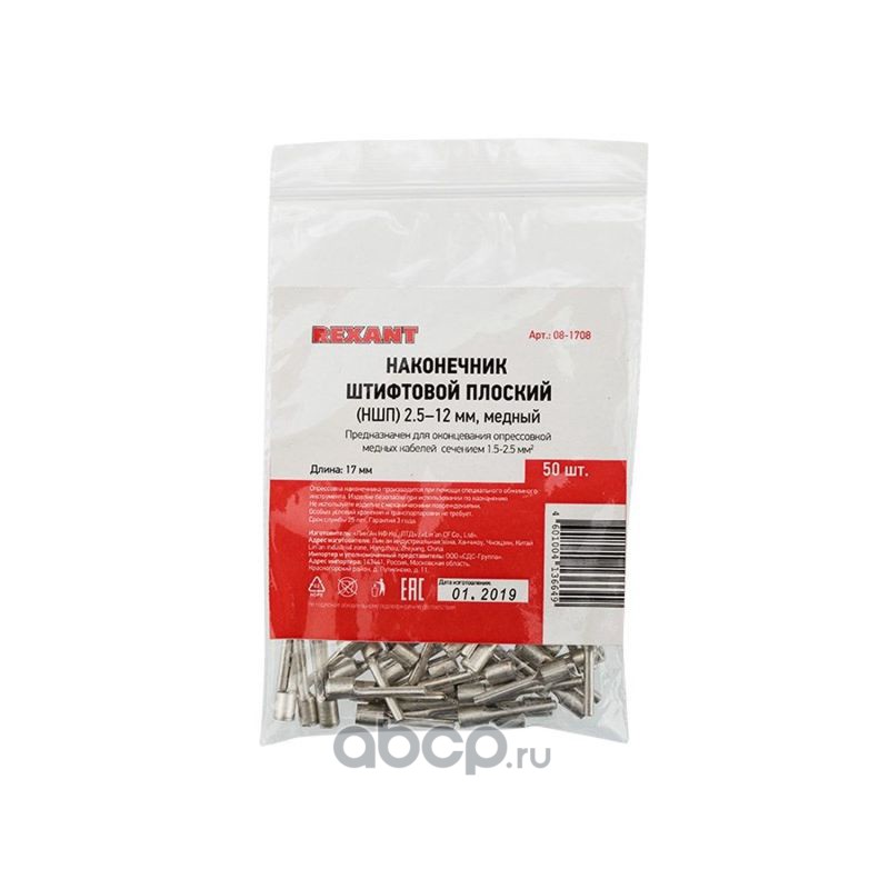 Наконечник штифтовой плоский кабельный (НШП) 2.5–12 REXANT