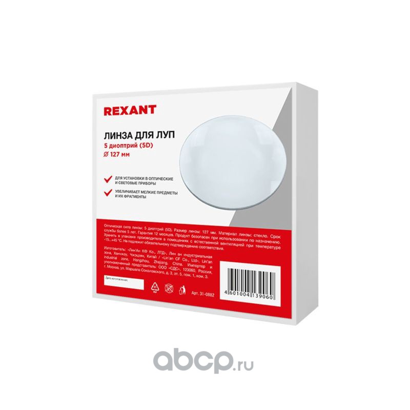Линза 5 диоптрий (5D), Ø 127 мм, для луп с подсветкой REXANT