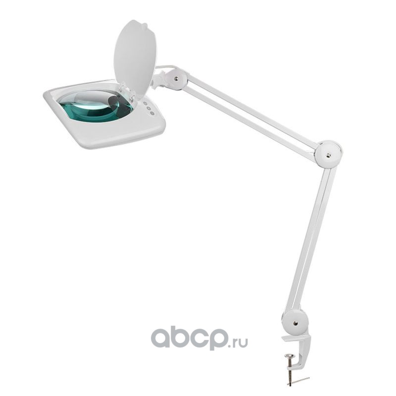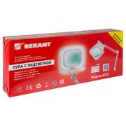 Лупа на струбцине REXANT, квадратная, 5D, с подсветкой и крышкой, белая