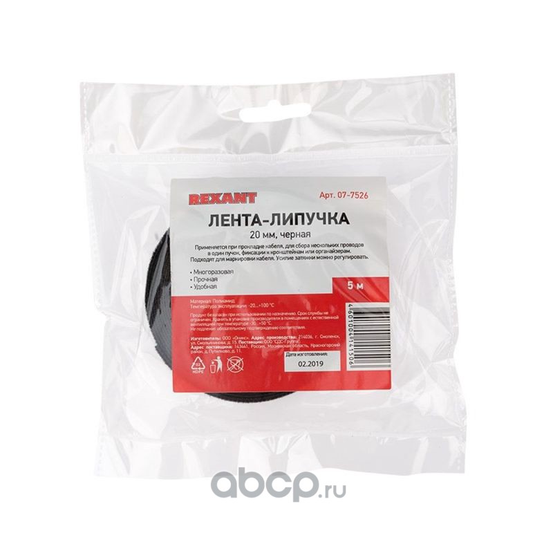 Лента-липучка многоразовая 5 м х 20 мм, черная (1 шт.) REXANT