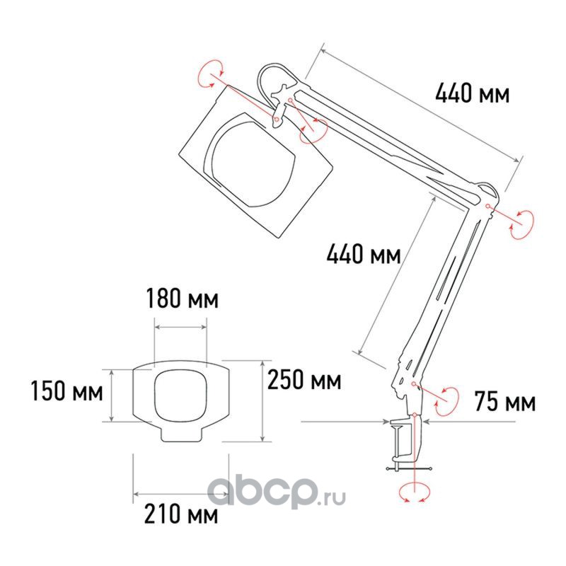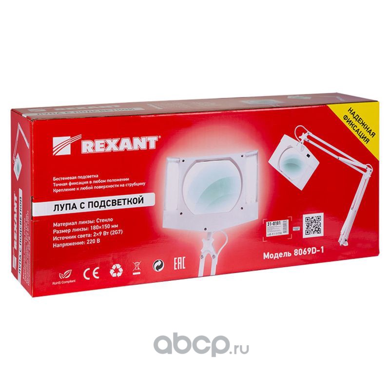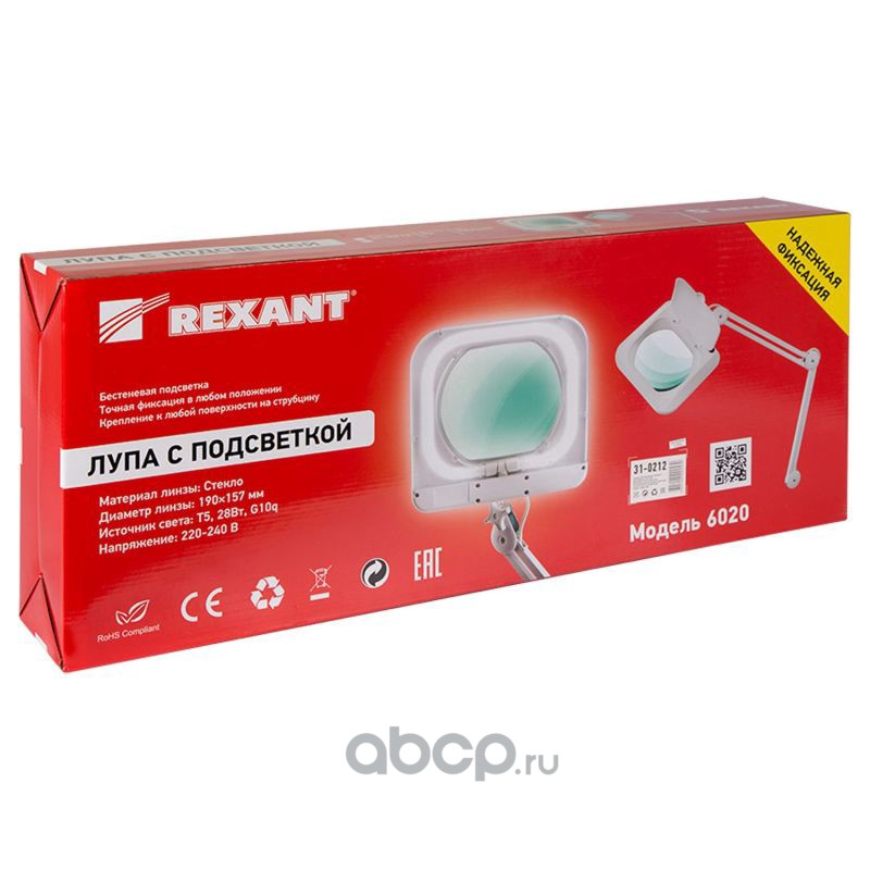 Лупа на струбцине REXANT, квадратная, 3D, с подсветкой, белая
