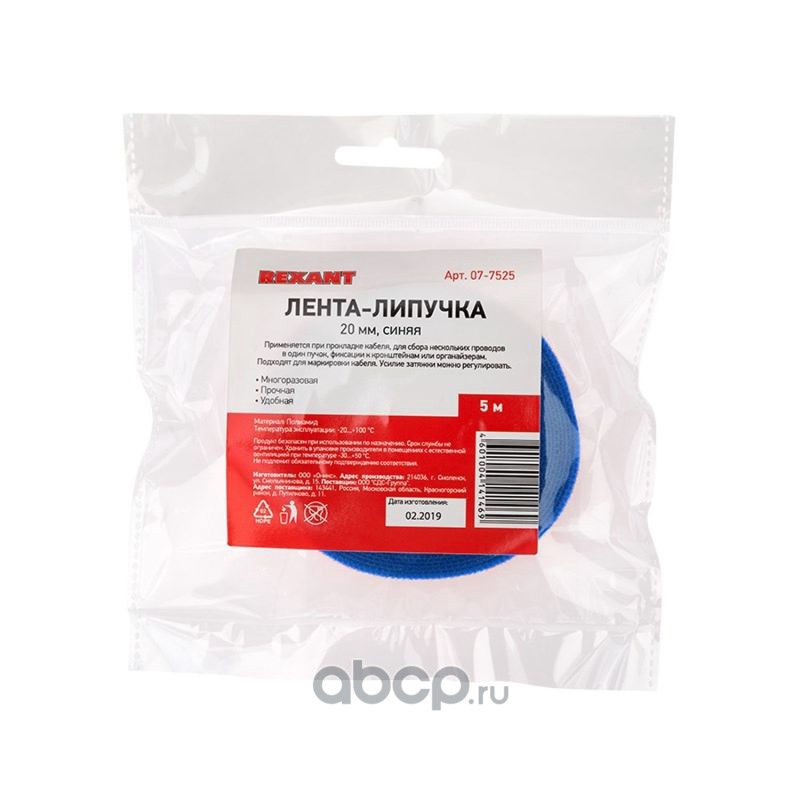 Лента-липучка многоразовая 5 м х 20 мм, синяя (1 шт.) REXANT