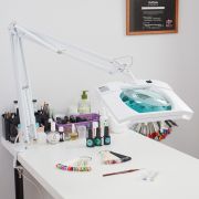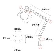 Лупа на струбцине , квадратная, 5D, с свет 60 SMD LED, сенсорный регулятор яркости, белая