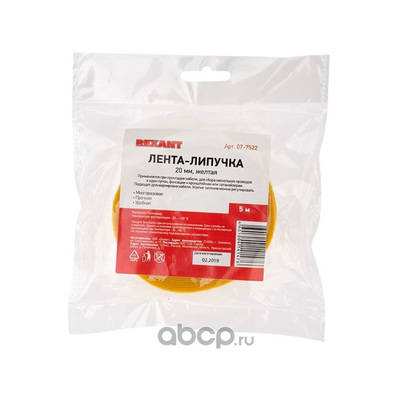 Лента-липучка многоразовая 5 м х 20 мм, желтая (1 шт.) REXANT