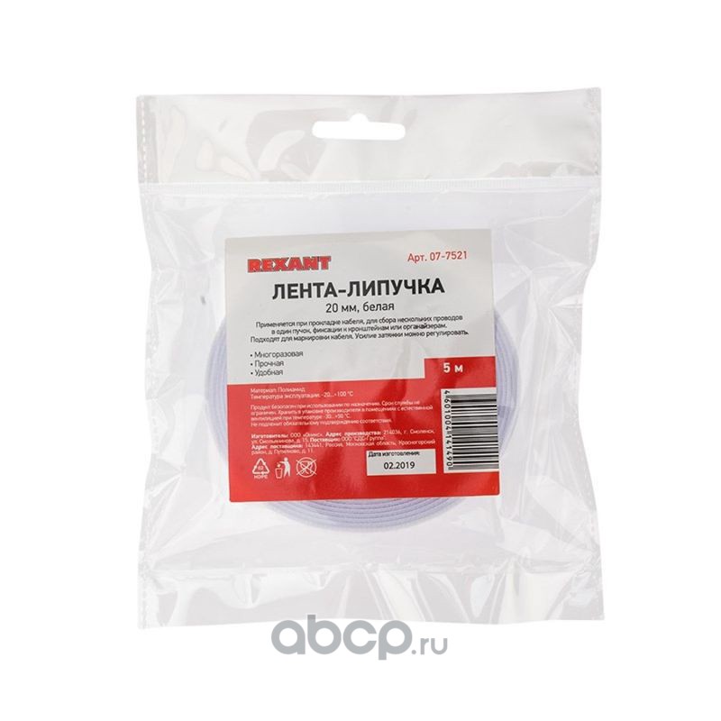 Лента-липучка многоразовая 5 м х 20 мм, белая (1 шт.) REXANT