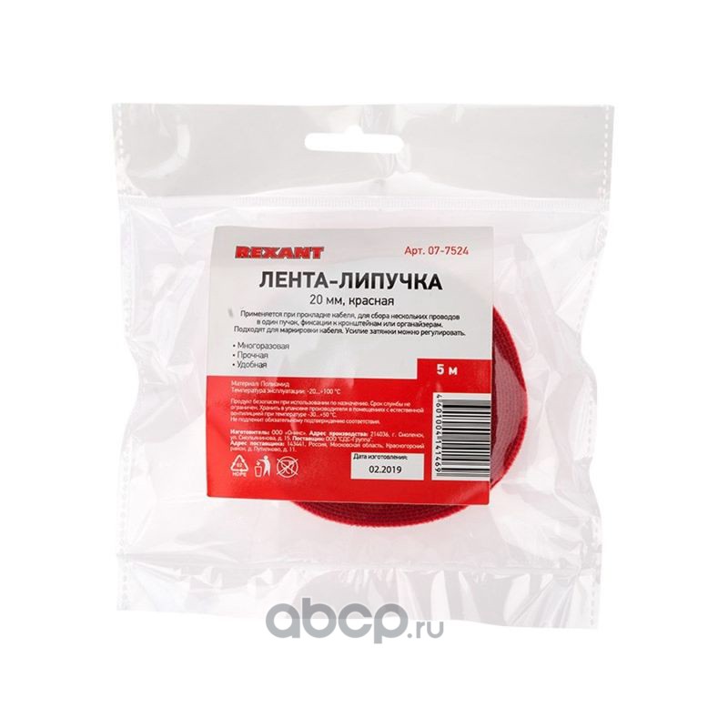 Лента-липучка многоразовая 5 м х 20 мм, красная (1 шт.) REXANT