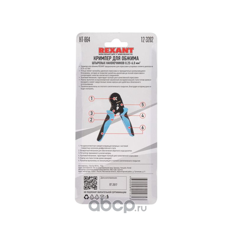 Кримпер REXANT HT-864 для обжима штыревых наконечников 0.25-6.0 мм²