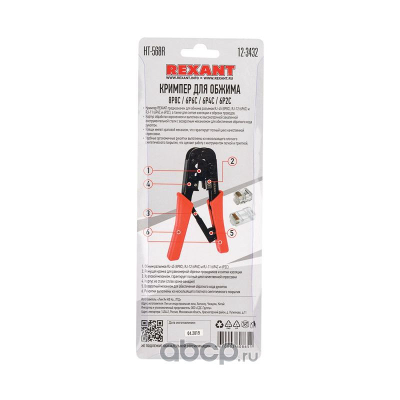 Кримпер для обжима REXANT HT-568R 8P8C, 6P6C
