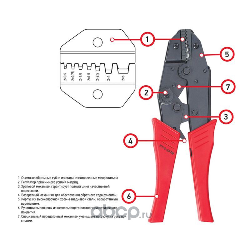 Кримпер REXANT HT-25 L для обжима неизолированных наконечников и гильз 6.0-26.0 мм²