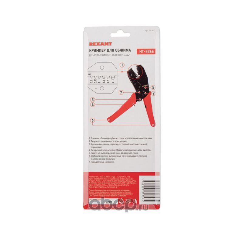 Кримпер REXANT HT-301 E для обжима штыревых наконечников 0.5-4.0 мм131