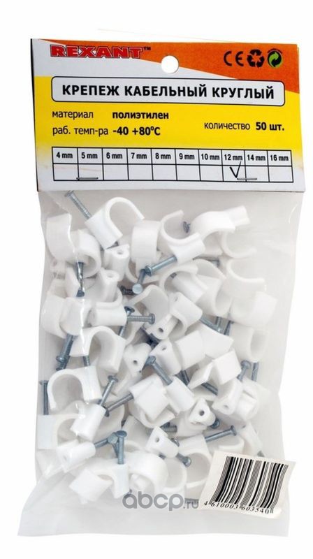 Крепеж кабеля круглый 12 мм, белый (упак. 50 шт) REXANT