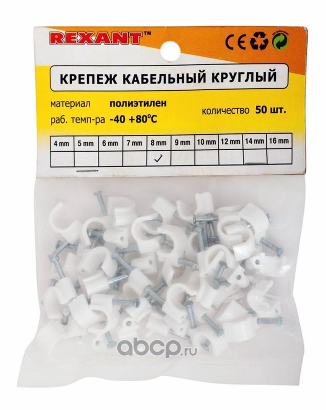 Крепеж кабеля круглый 8 мм, белый (упак. 50 шт) REXANT