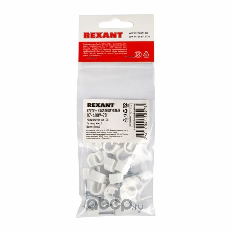 Крепеж кабеля круглый 9 мм, белый (упак. 20 шт) REXANT