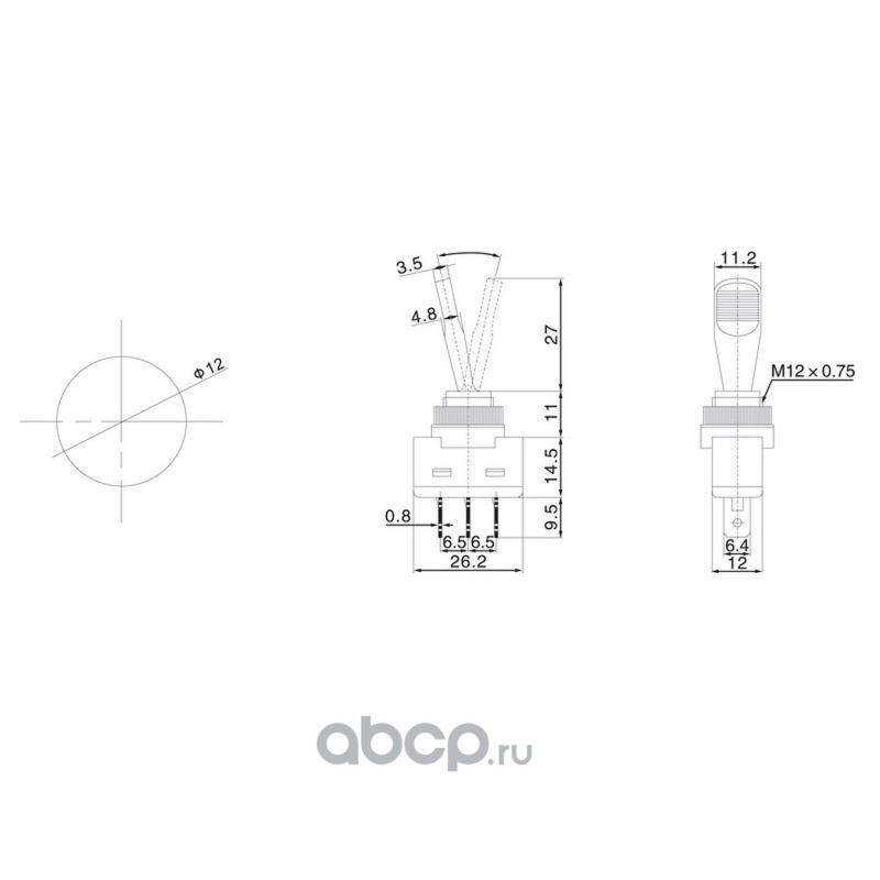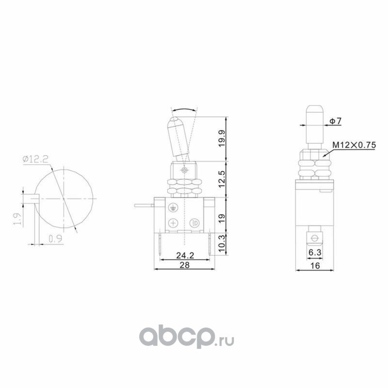 Тумблер 12V 25А (3c) ON-OFF однополюсный с зеленой LED подсветкой REXANT