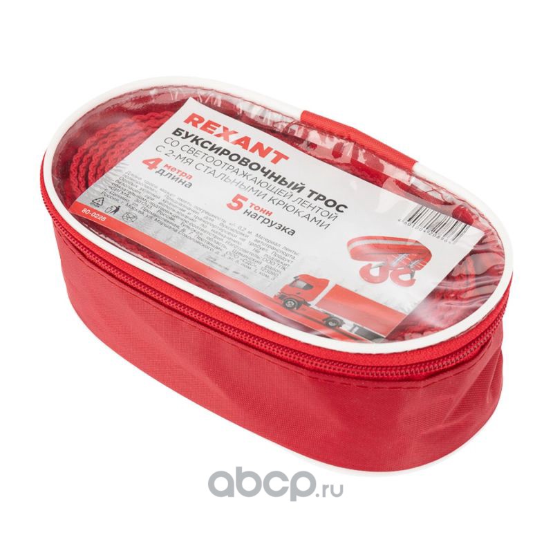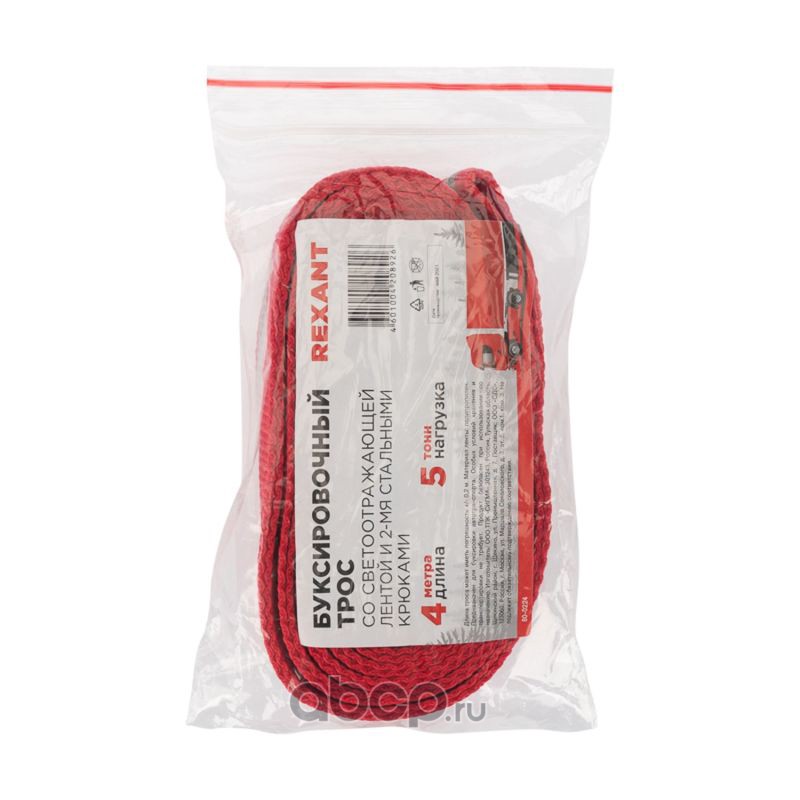 Трос буксировочный REXANT со светоотражающей лентой, 5 т, 4 м, с двумя крюками, в чехле