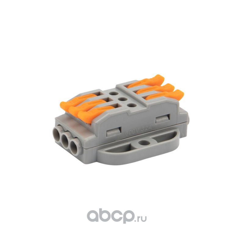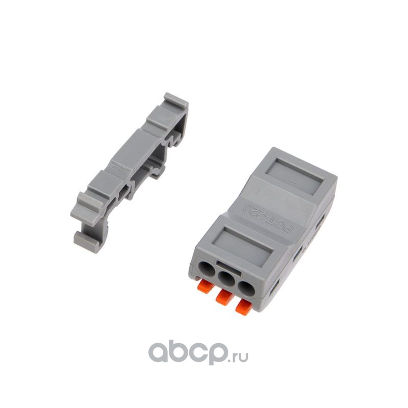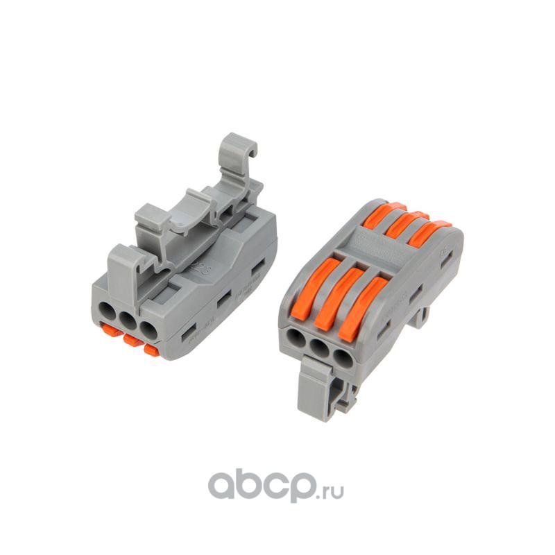 Клемма СМК 222-423D проходная 3-полюсная, с креплением на DIN-рейку (0,08-4 мм²) серая (50 шт./уп.) REXANT