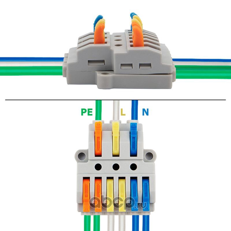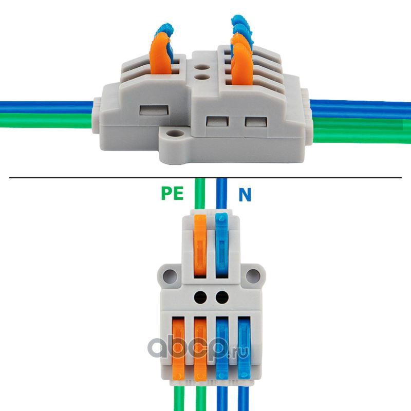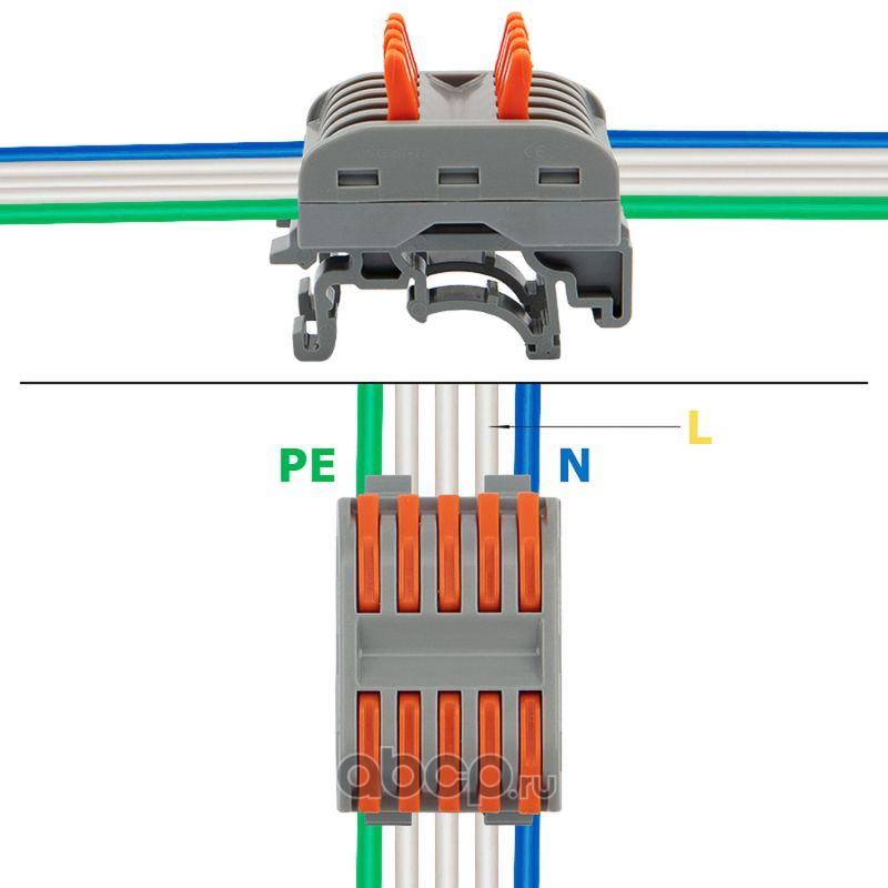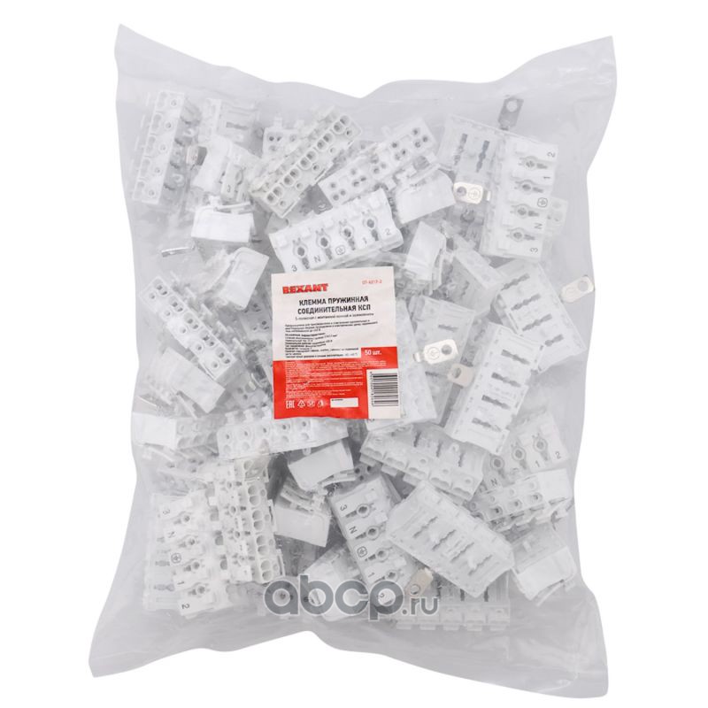Клемма пружинная соединительная КСП 5-полюсная с заземлением и с монтажными ножками (50 шт./уп.) REXANT