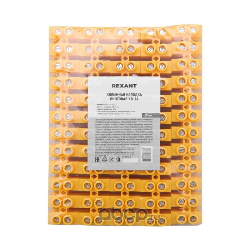 Клеммная винтовая колодка KВ-14 6-14, ток 20 A, полиэтилен желтый REXANT (10 шт./уп.)