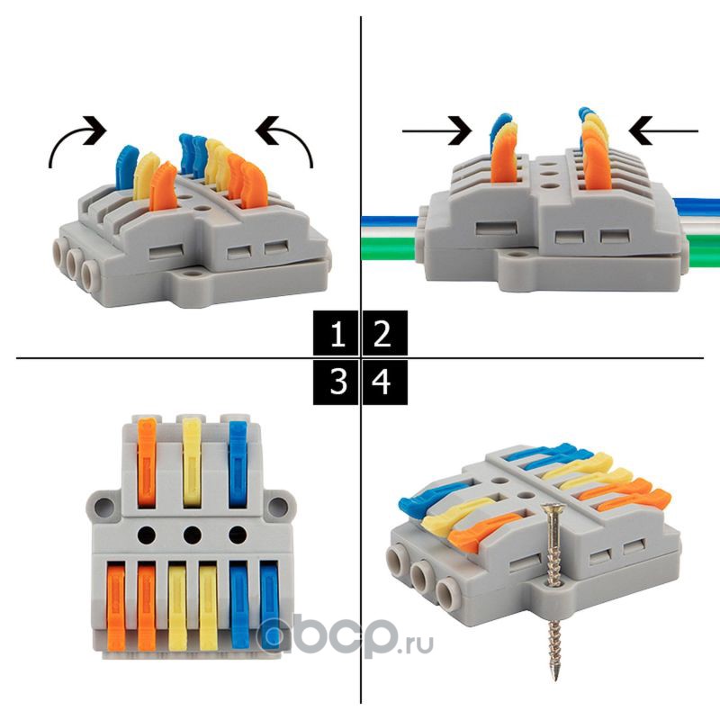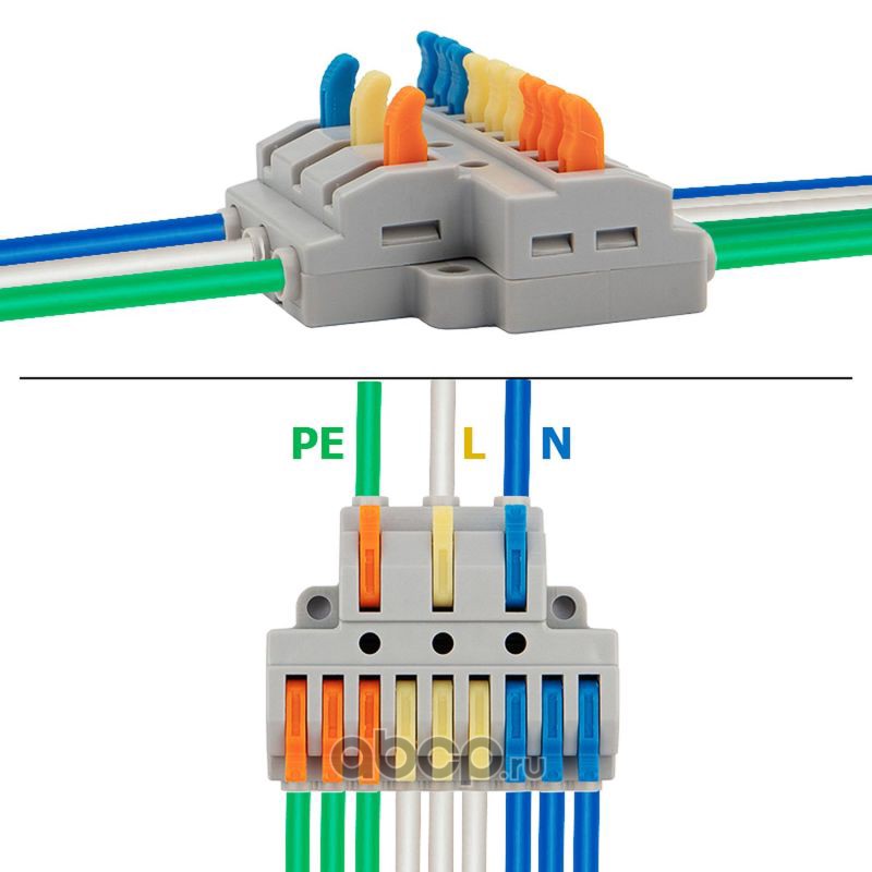 Клемма соединительная рычажковая компактная3-проводная, прозрачная, 0.14-4 мм² (20 шт./уп.)