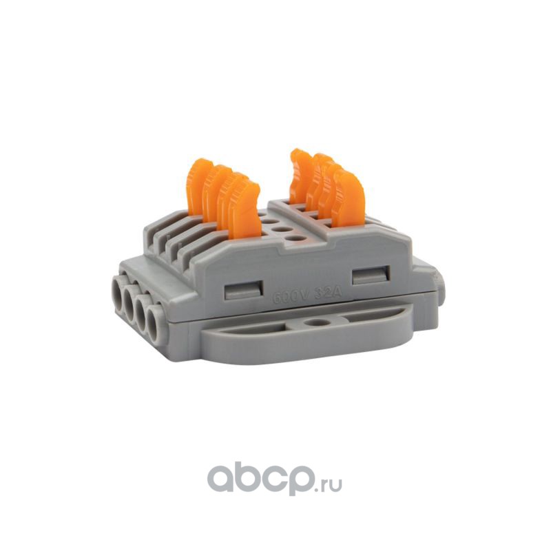 Клемма СМК 222-424D проходная 4-полюсная, с креплением на DIN-рейку (0,08-4 мм²) серая (50 шт./уп.) REXANT