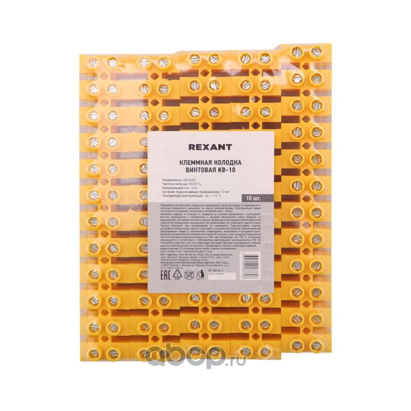 Клеммная винтовая колодка KВ-10 4-10, ток 10 A, полиэтилен желтый REXANT (10 шт./уп.)