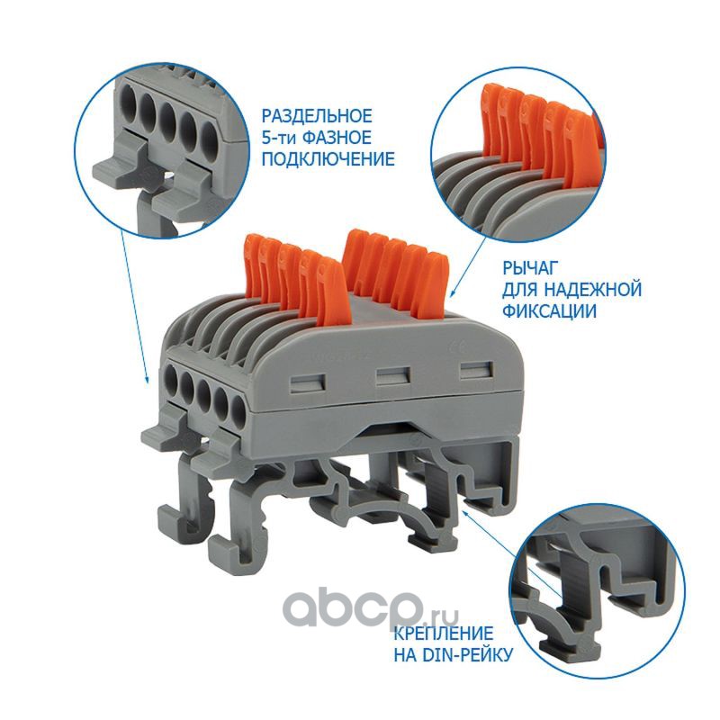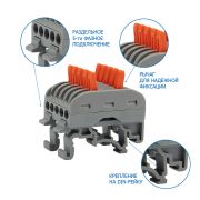 Клемма СМК 222-425D проходная 5-полюсная, с креплением на DIN-рейку (0,08-4 мм²) серая (20 шт./уп.) REXANT