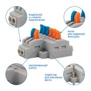 Клемма соединительная многоразовая REXANT 2-проводная, серая, 0.08-4 мм² (20 шт./уп.)