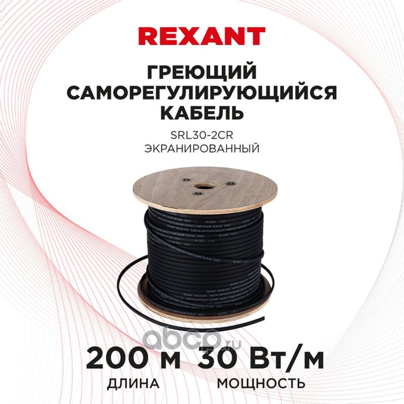 Кабель греющий саморегулирующийся REXANT SRL30-2CR, экранированный, 30 Вт/1 м, 200 м
