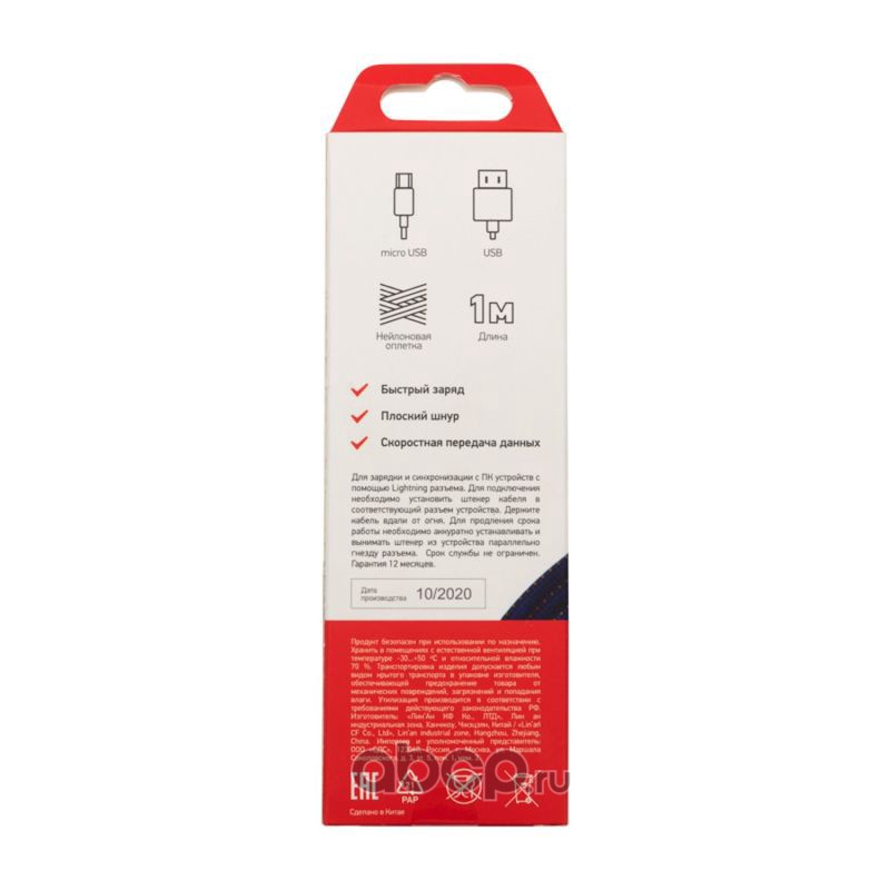 USB кабель универсальный microUSB шнур плоский 1 м черный