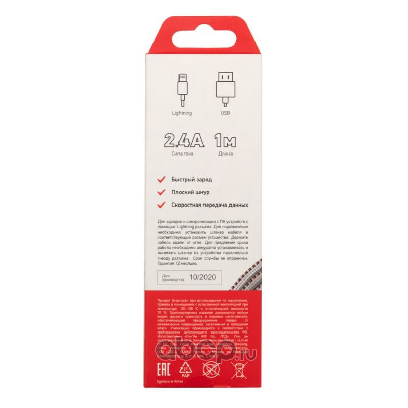 Кабель REXANT USB-Lightning 2.4 A, 1 м, белая нейлоновая оплетка