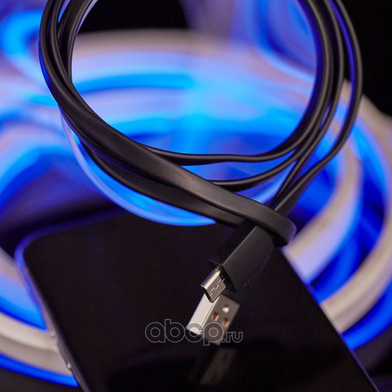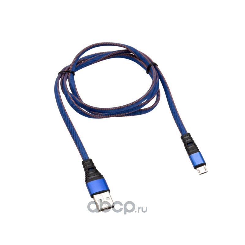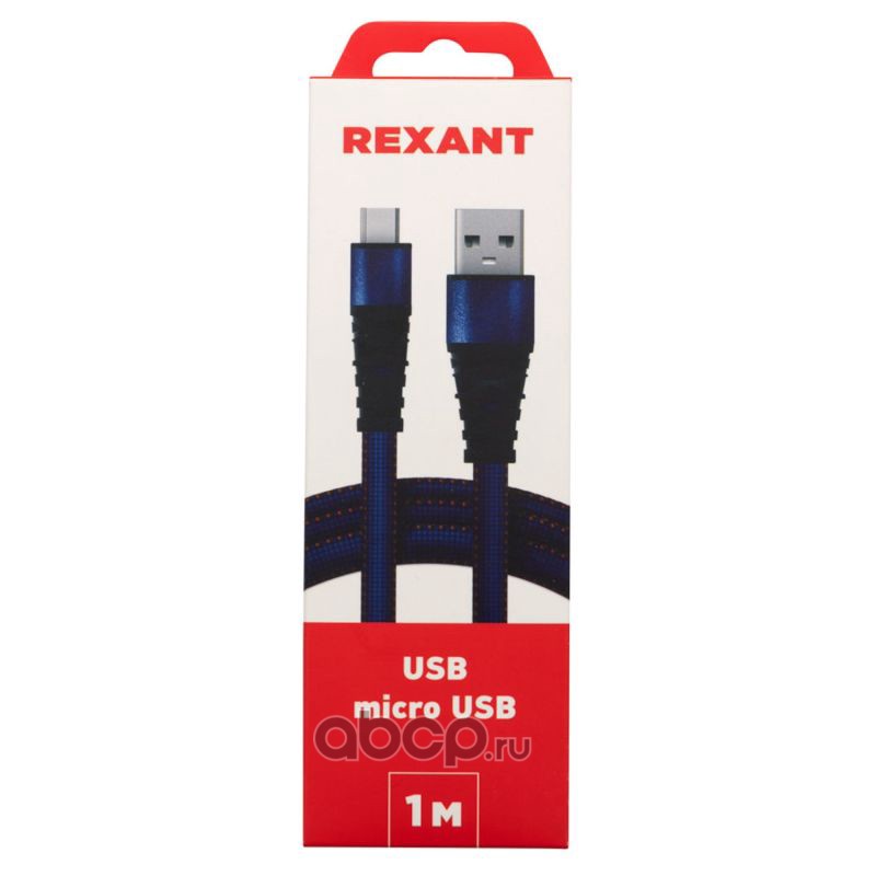 Кабель REXANT USB-microUSB 1 м, плоский провод, синяя джинсовая оплетка