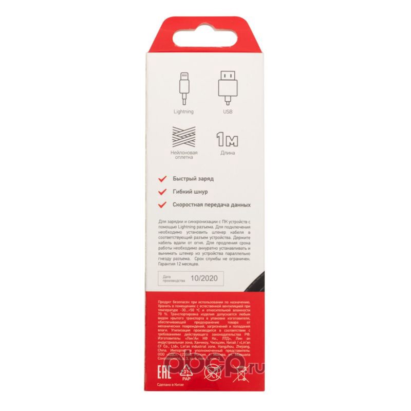 Кабель REXANT USB-Lightning 1 м, черная нейлоновая оплетка