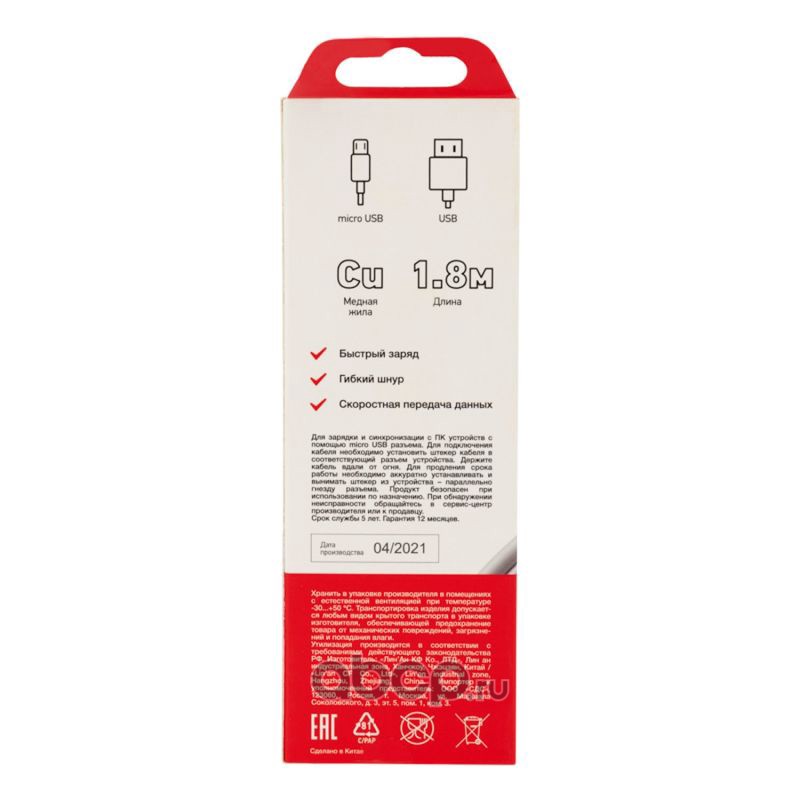 Кабель USB (шт. micro USB - шт. USB A) 1.8 метра, серый REXANT