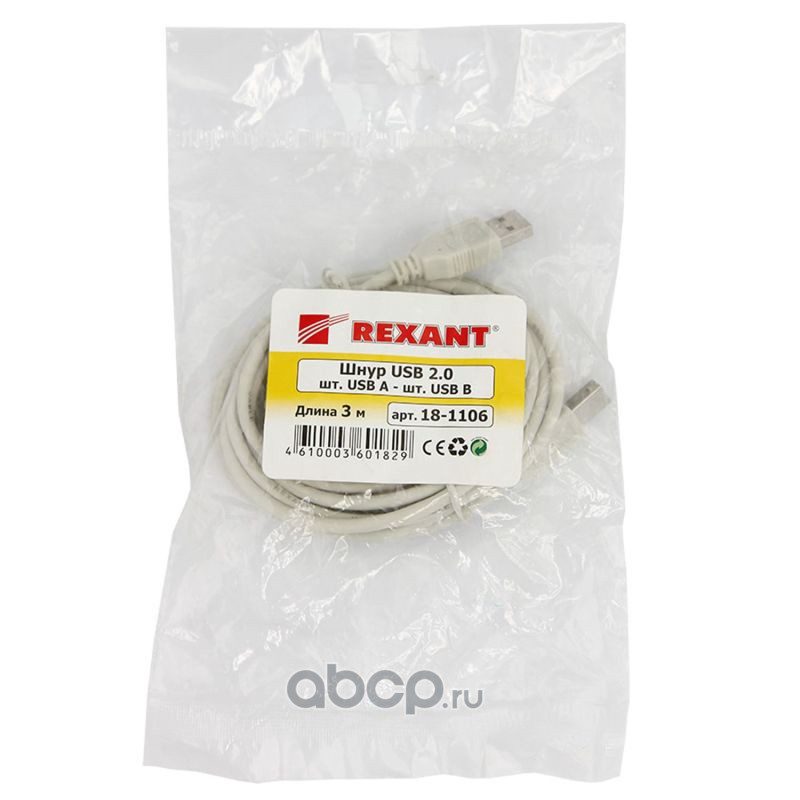 Кабель USB (шт. USB B - шт. USB A) 1.8 метра, серый REXANT